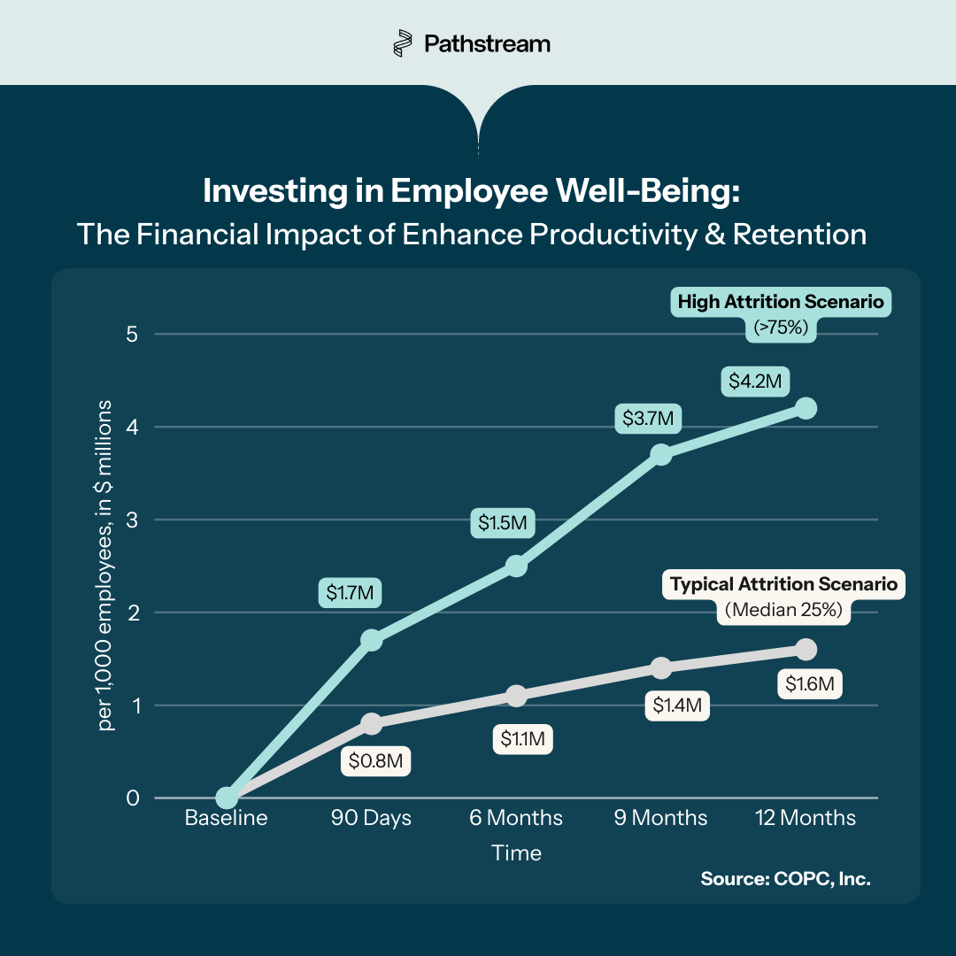 It's crucial for call center and business unit leaders to understand that fostering immediate, tangible career progression opportunities isn't just a morale booster – it's a strategic investment. At Pathstream, we've witnessed firsthand the transformative impact of integrating concise, early-stage retention strategies alongside more traditional approaches. The outcome? More vibrant, committed teams and significant financial returns.
