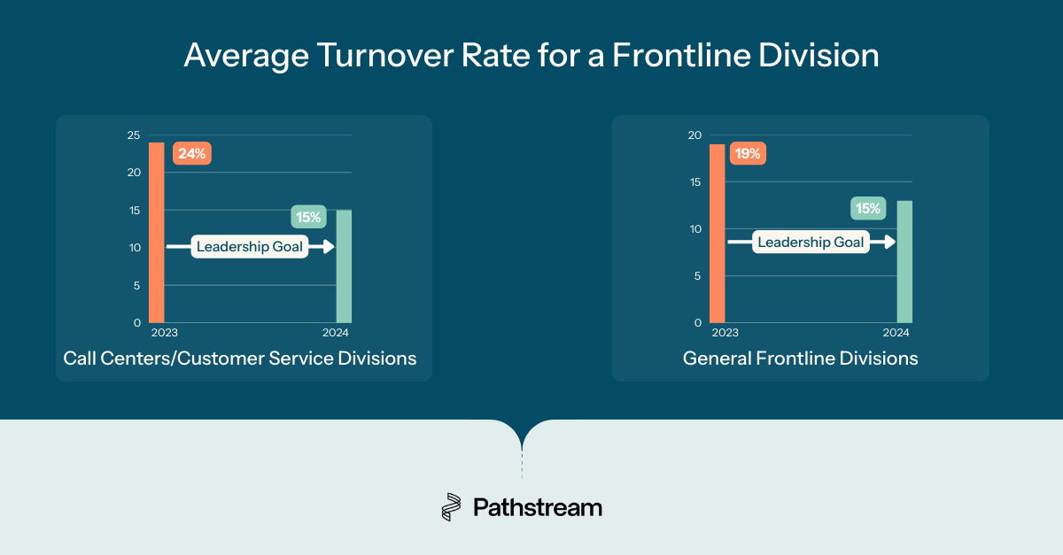 According to our market survey taken by Fortune 500 frontline business unit leaders, the average turnover rate for a frontline division in 2023 was approximately 19%. And 24% for call centers and customer service divisions. Leaders hope to get these numbers down to 13% and 15%, respectively, in 2024.